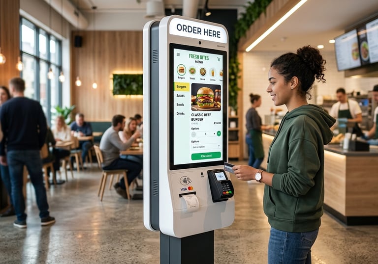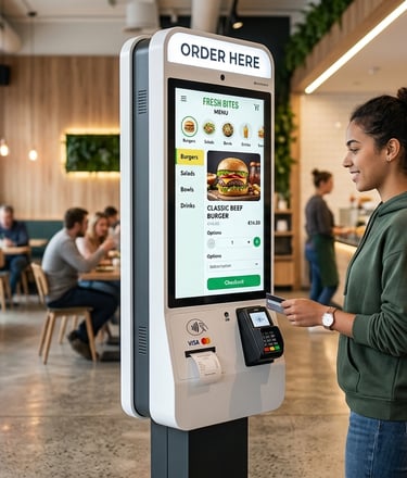 Solutions digitales modernes avec nos bornes de commande interactives et design.